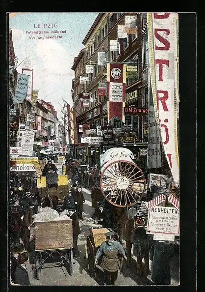 AK Leipzig, Petersstrasse während der Engros-Messe, AK-Reklame RPH