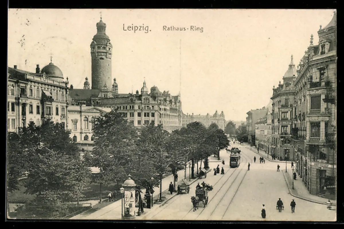 AK Leipzig, Rathaus-Ring mit Strassenbahn