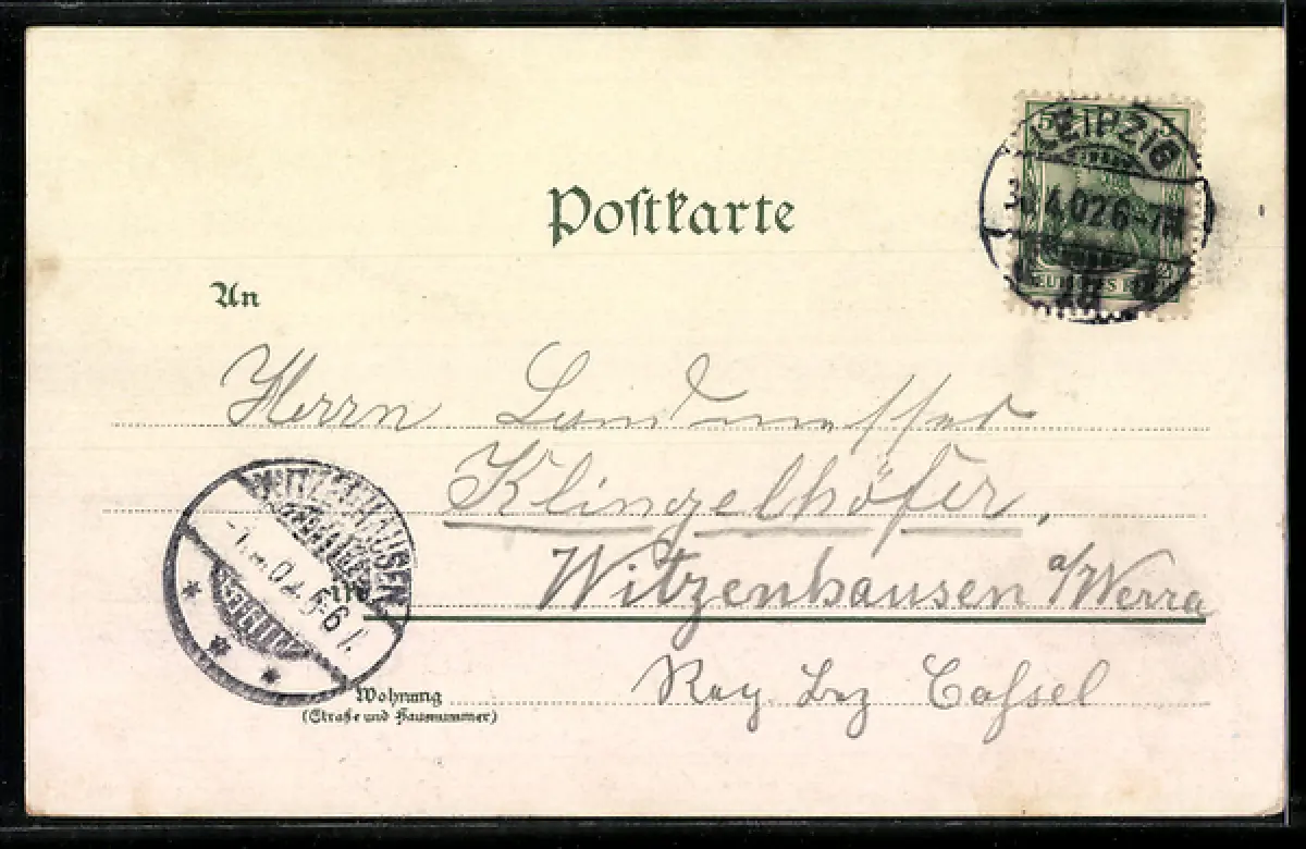alte Ansichtskarte, gelaufen 1902, Bugspur links oben, guter Zustand