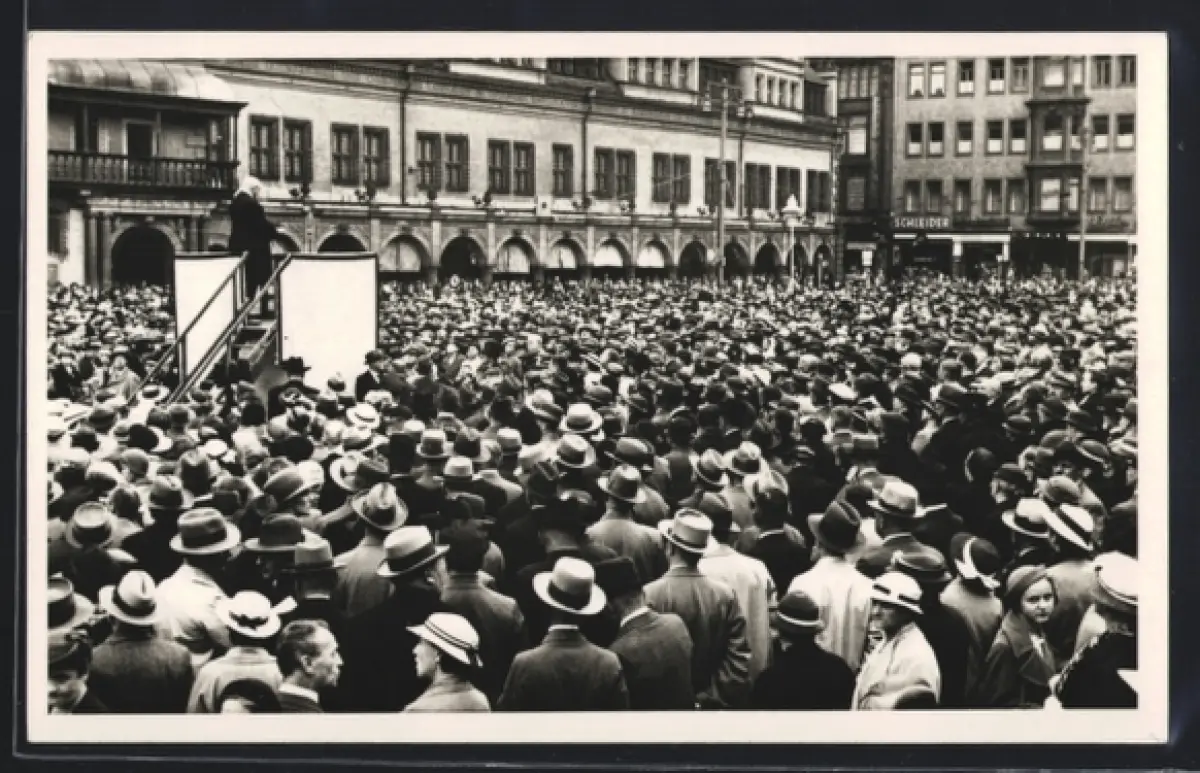 AK Leipzig, Redner vor Menschenmenge