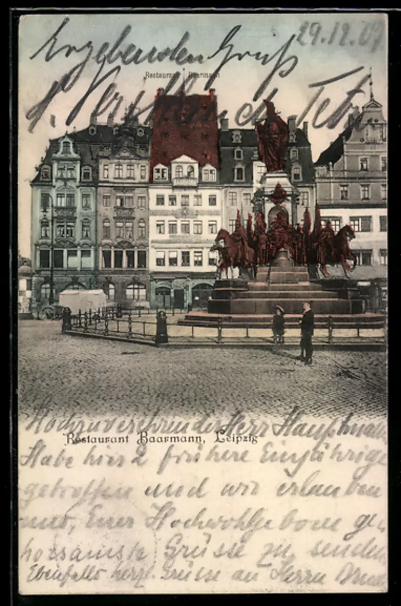 AK Leipzig, Restaurant Baarmann mit Denkmal