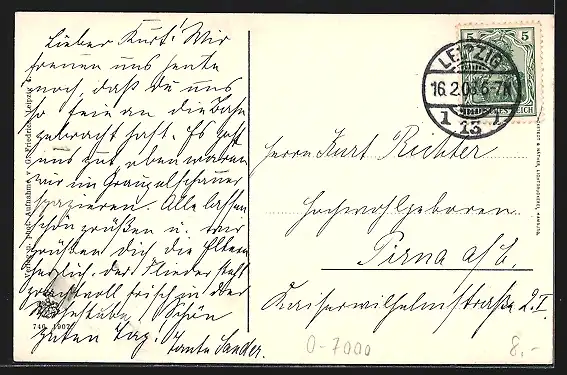 alte Ansichtskarte, gelaufen 1908, Stempelspur, guter Zustand