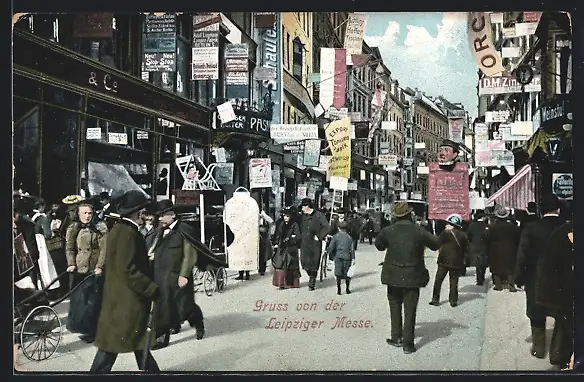 AK Leipzig, Strassenpartie zur Leipziger Messe