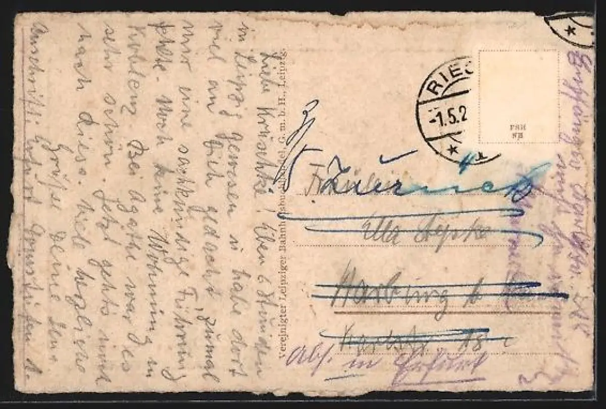alte Ansichtskarte, gelaufen, Briefmarke entfernt, guter Zustand