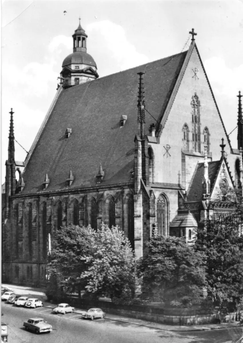 Ansichtskarte Leipzig Thomaskirche Erhaltung I-II, minimaler Eckbug oben links Druckart: Fotokarte postalisch gelaufen, gestempelt: Leipzig BPA 32, 22.8.67 Druckvermerk: 1966 Herstellungsland: DDR Verlag: VEB Bild und Heimat, Reichenbach i. V. - 13/2096