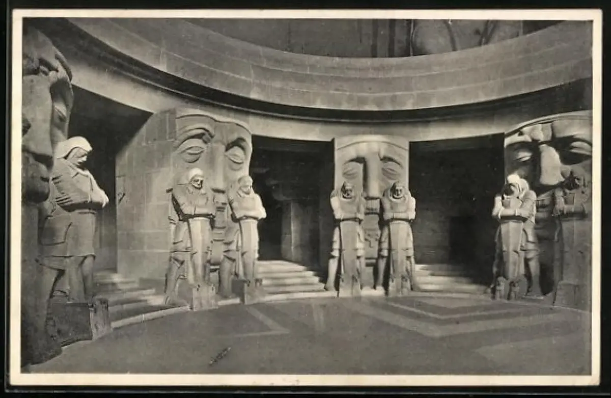 AK Leipzig, Völkerschlachtdenkmal, Krypta mit Totenwächter, Innenansicht