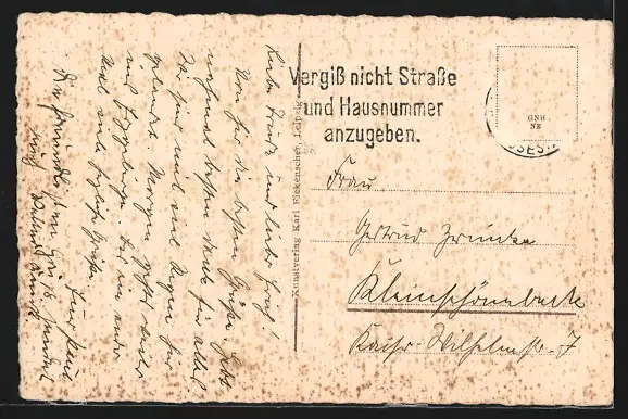 alte Ansichtskarte, gelaufen, Briefmarke entfernt, guter Zustand