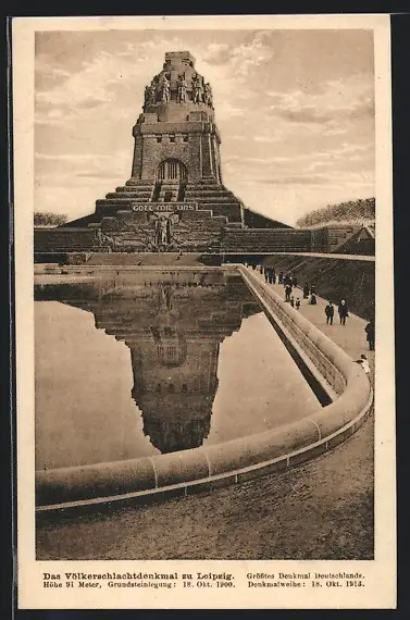 AK Leipzig, Völkerschlachtdenkmal mit Teich