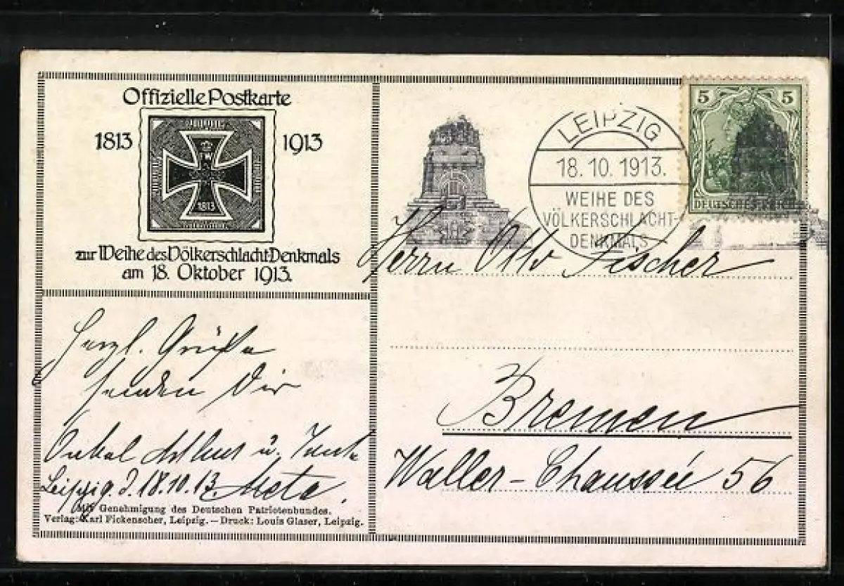 AK Leipzig, Völkerschlachtdenkmal, offizielle Postkarte zur Weihe des Denkmals 1913