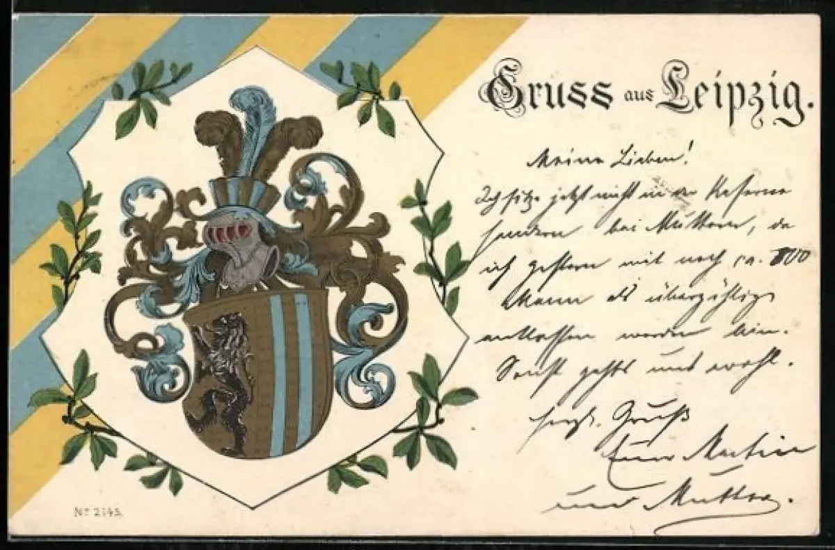 AK Leipzig, Wappen mit Ritterhelm und Greif