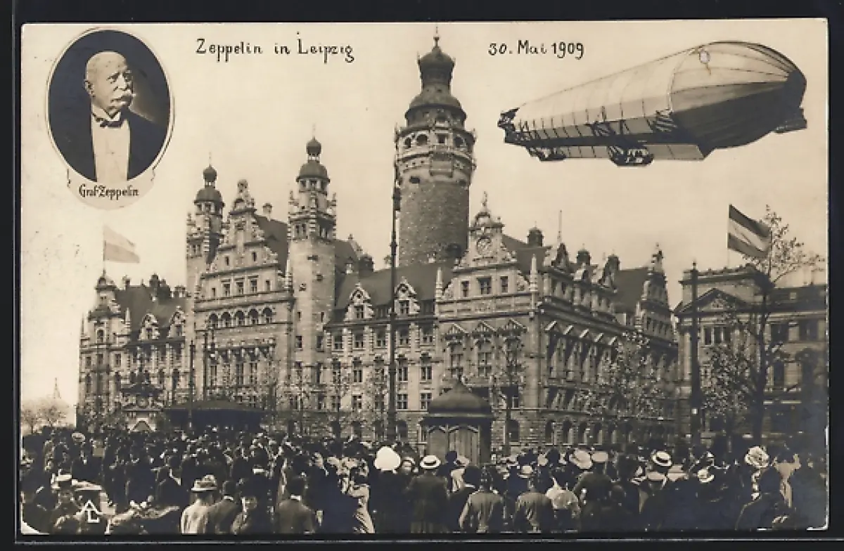 AK Leipzig, Zeppelin über dem Rathaus, Graf Zeppelin