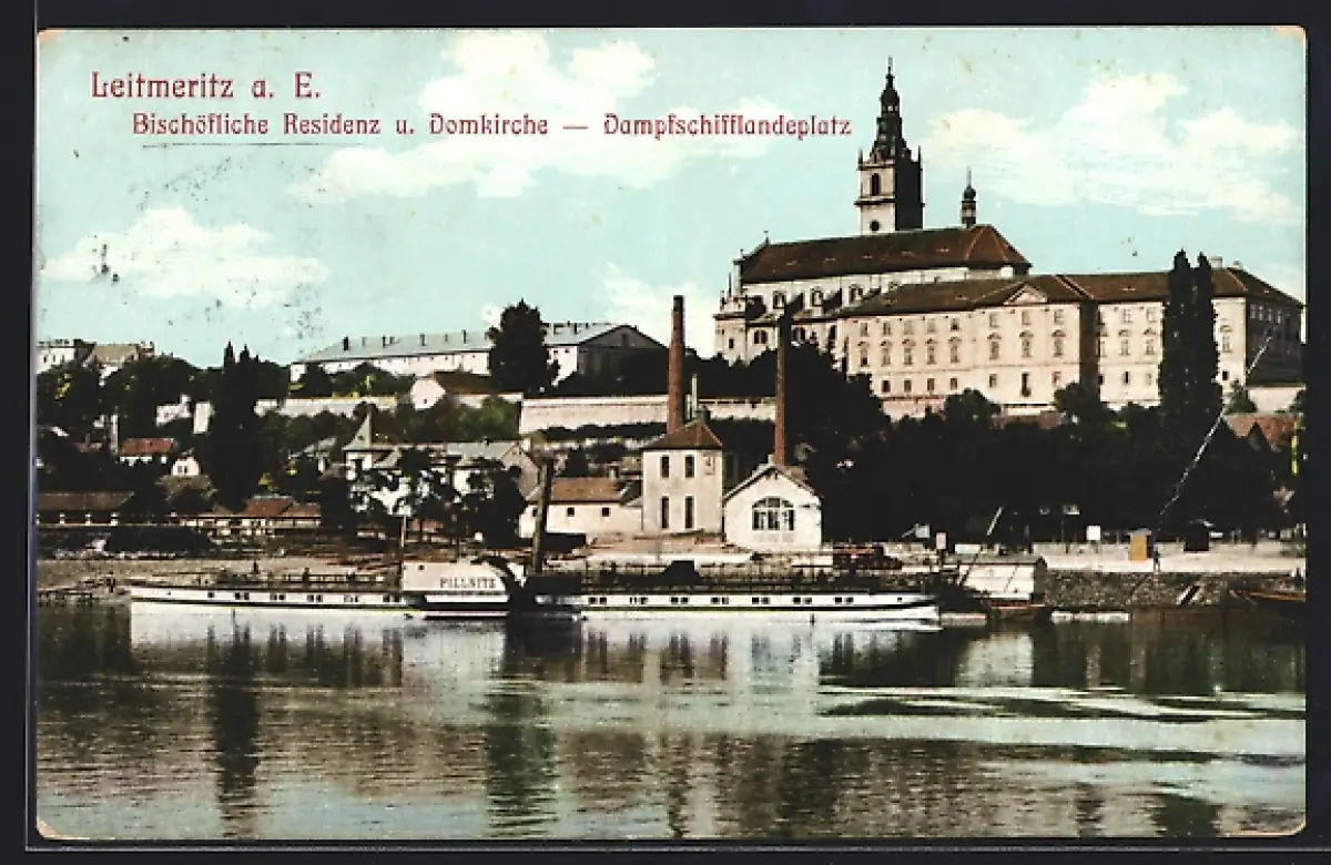 AK Leitmeritz / Litomerice, Bischöfliche Residenz u. Domkirche, Dampfschifflandeplatz