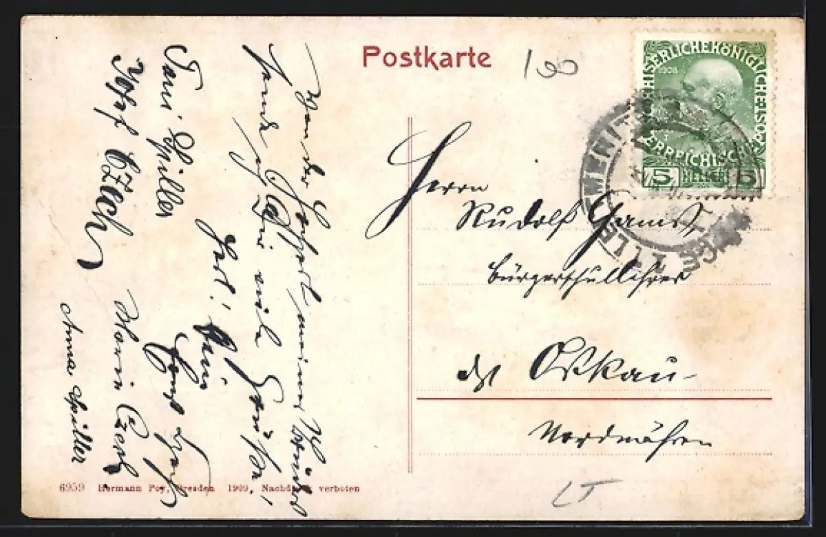 alte Ansichtskarte, gelaufen, Stempelspur, guter Zustand
