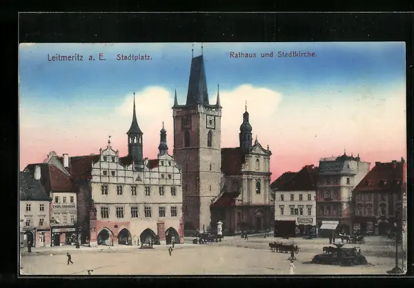 AK Leitmeritz / Litomerice, Stadtplatz, Rathaus, Stadtkirche