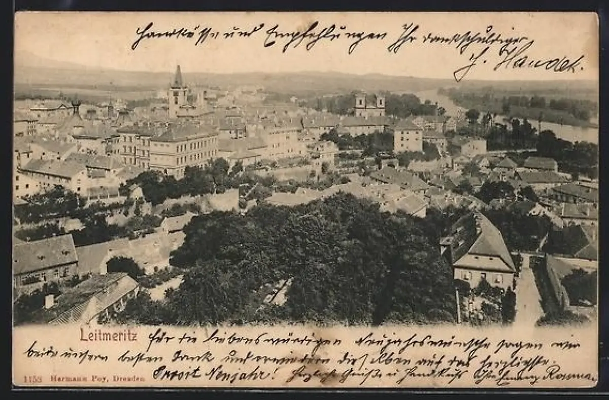 AK Leitmeritz, Ortsansicht aus der Vogelschau