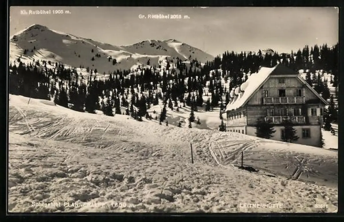 AK Leitnerhütte /Planneralpe, Schneelandschaft mit Kl. Rotbühel u. Gr. Rotbühel