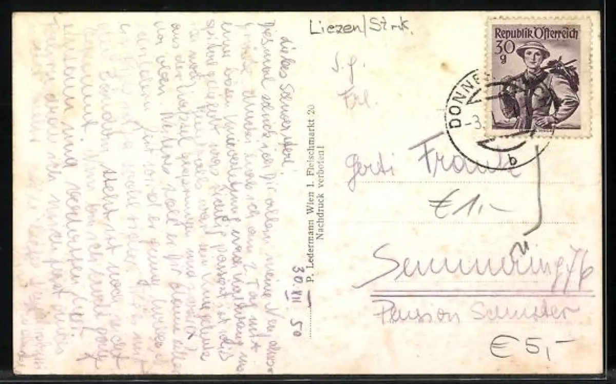 alte Ansichtskarte, gelaufen 1950, Bugspur li. oben, guter Zustand