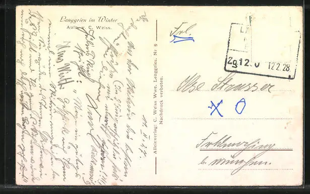 alte Ansichtskarte, gelaufen 1928, Briefmarke entfernt, Eckknick unten links, guter Zustand