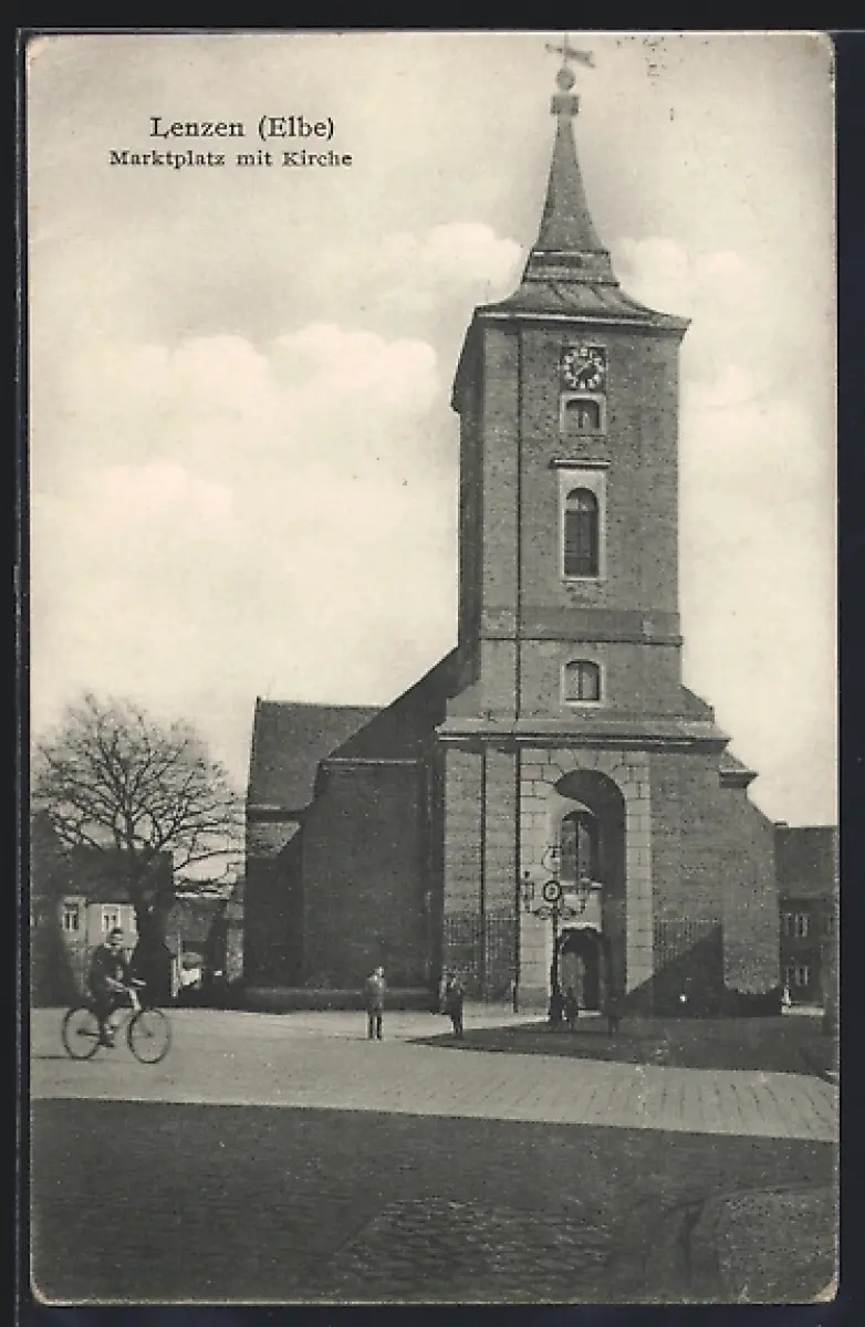 AK Lenzen /Elbe, Marktplatz mit Kirche
