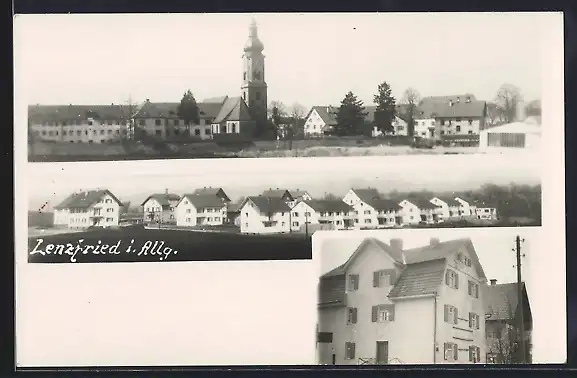 AK Lenzfried i. Allg., Ortspanorama mit Kirche