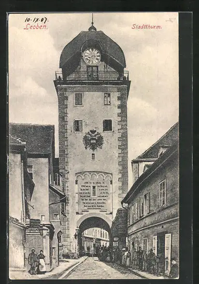 AK Leoben, Blick unter dem Stadtturm