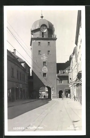 AK Leoben, Strassenpartie am Stadtturm