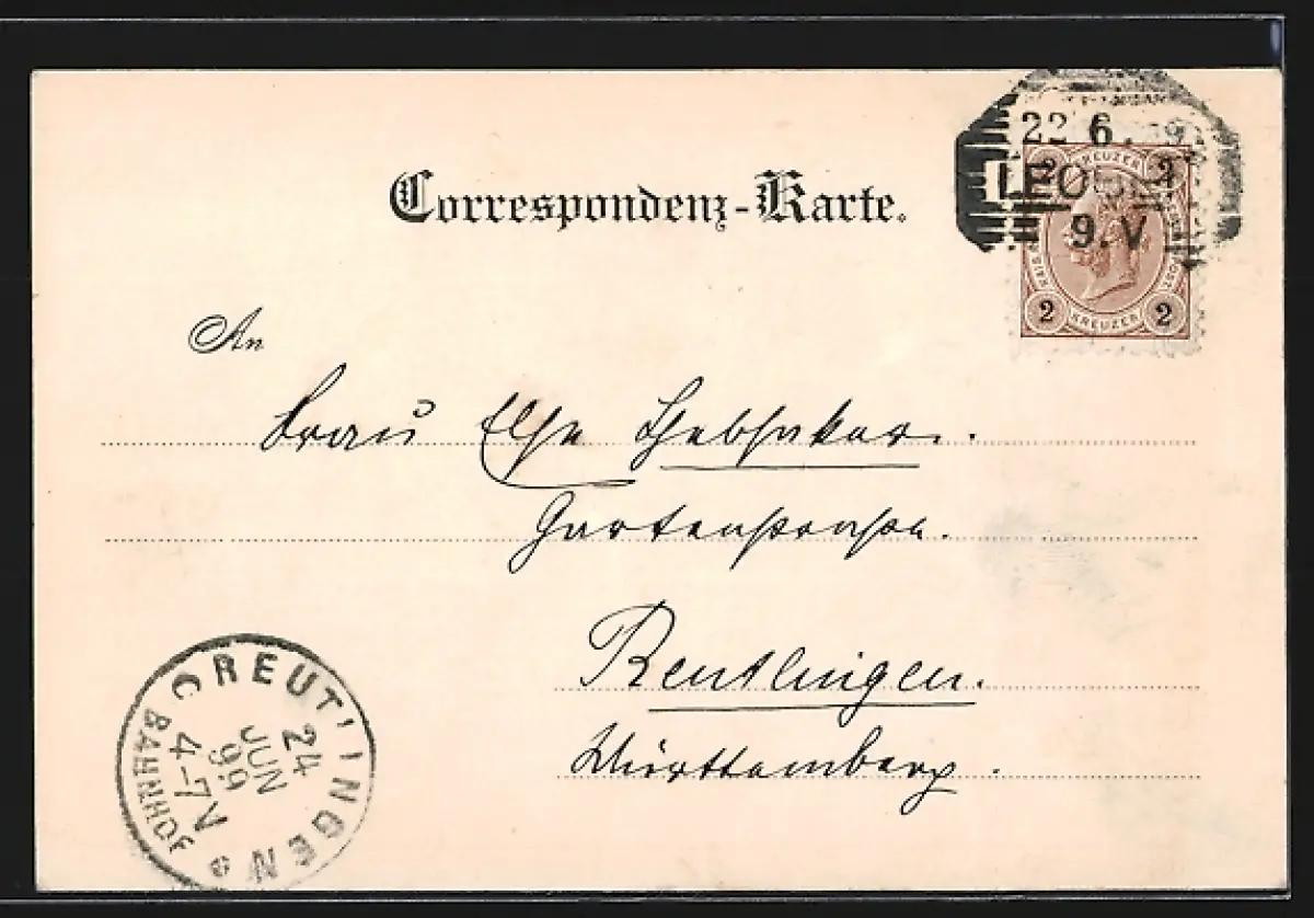 alte Ansichtskarte, gelaufen 1899, guter Zustand
