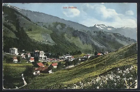 AK Les Avants, Ortsansicht mit Bergpanorama
