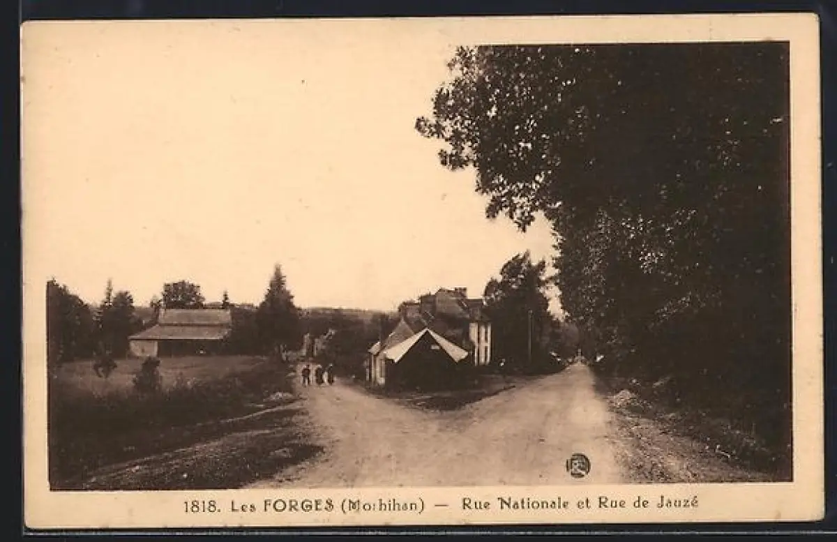 AK Les Forges /Morbihan, Rue Nationale et Rue de Jauzé
