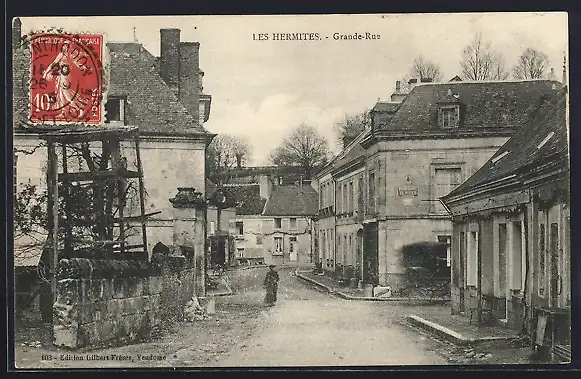 AK Les Hermites, Grande-Rue en perspective avec bâtiments anciens et végétation