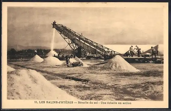 AK Les Sallins d`Hyeres, Recolte du sel, Une échelle en action