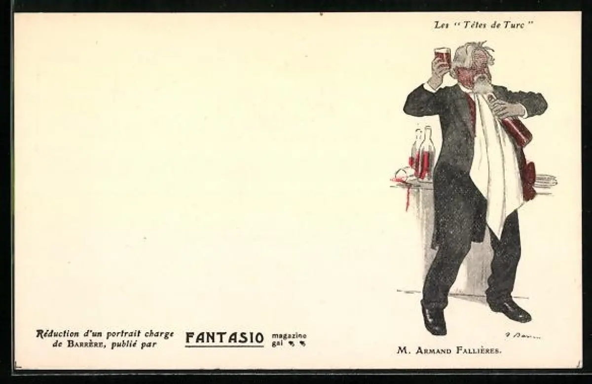 AK Les Tets de Turc, M. Armand Fallieres trinkt Wein, Karikatur