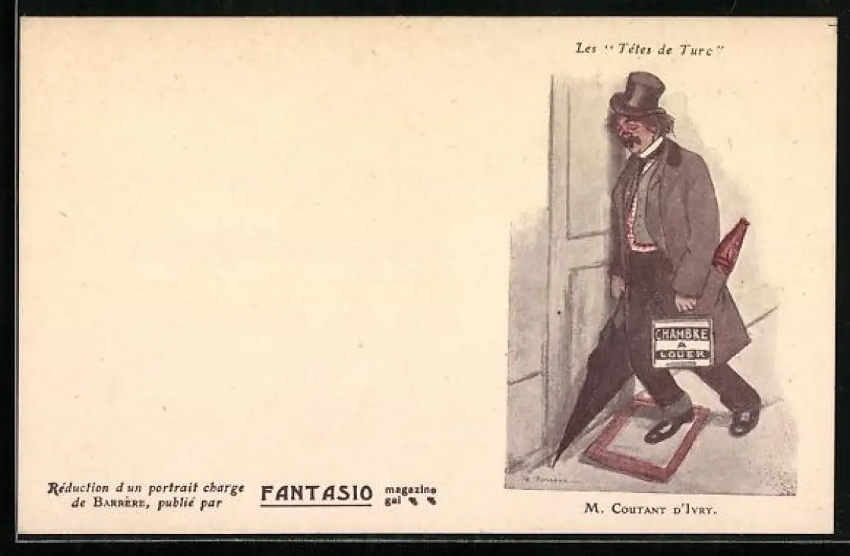 AK Les Tets de Turc, M. Coutant d`Ivry lehnt an einer Wohnungstür, Karikatur