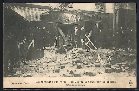 AK Les Zeppelins sur Paris, Effet d`un bombe, Verwüstung durch Zeppelin