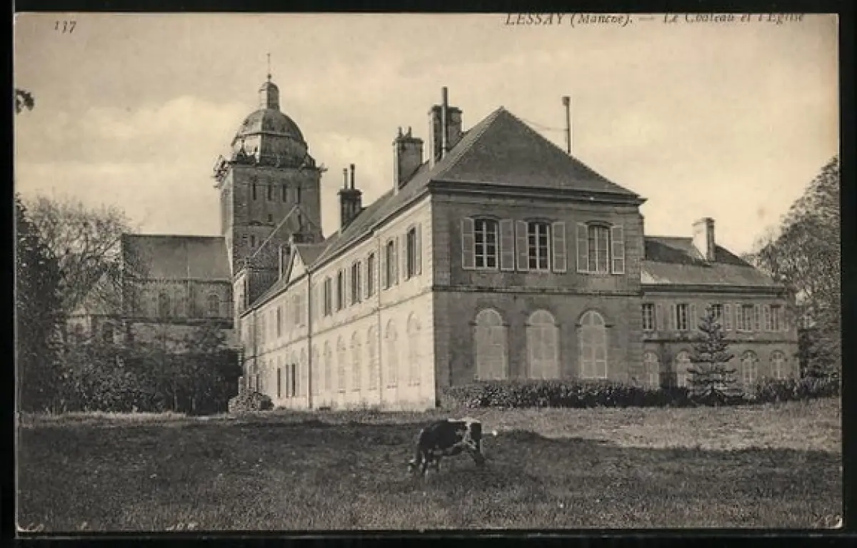 AK Lessay /Manche, La Cour d`Argouges et l`église