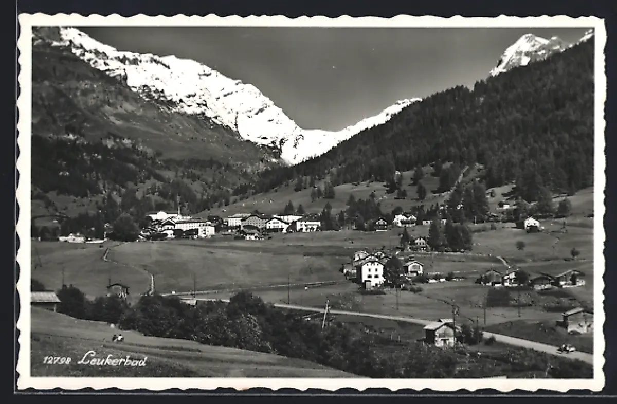 AK Leukerbad, Ortsansicht aus der Vogelschau