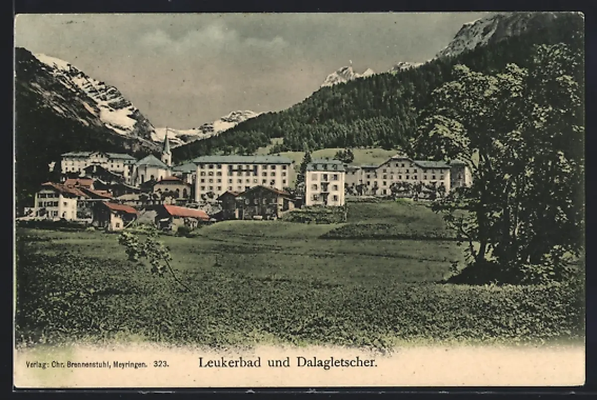 AK Leukerbad, Ortsansicht mit Dalagletscher