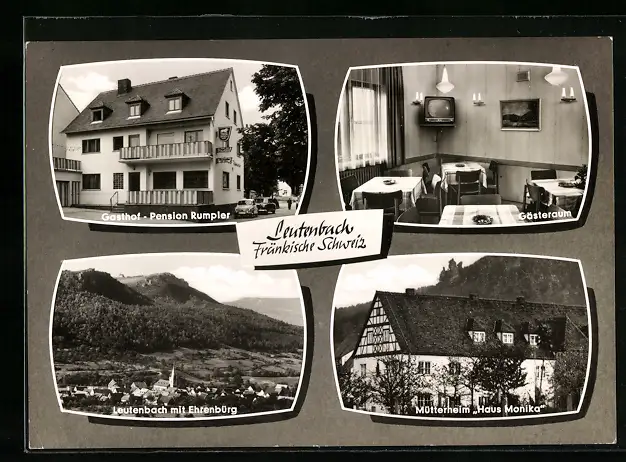 AK Leutenbach /Fränk. Schweiz, Gasthof-Pension Rumpler, Ortsansicht mit Ehrenbürg