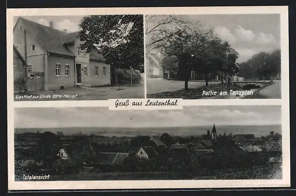 AK Leutenthal, Gasthof zur Linde Otto Haupt, Partie am Tanzplatz, Totalansicht