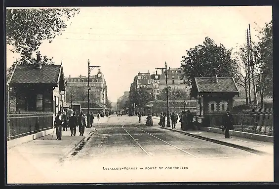 AK Levallois-Perret, Porte de Courcelles avec passants et bâtiments urbains en arrière-plan