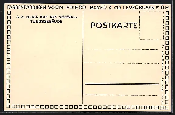 AK Leverkusen a. Rh., Farbenfabriken vorm. Friedr. Bayer & Co, Verwaltungsgebäude
