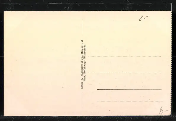 Personenbezogene Daten auf der Rückseite der Karte wurden durch blauen Textmarker unkenntlich gemacht. Die blauen Stellen sind auf die Vorderseite durchgeweicht und wirken sich negativ auf das Postkartenfoto aus