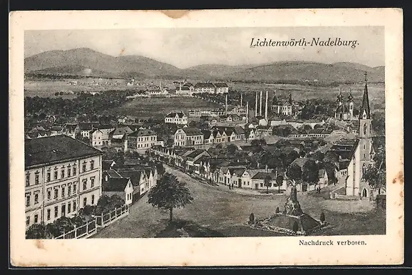 AK Lichtenwörth-Nadelburg, Ortsansicht mit Denkmal