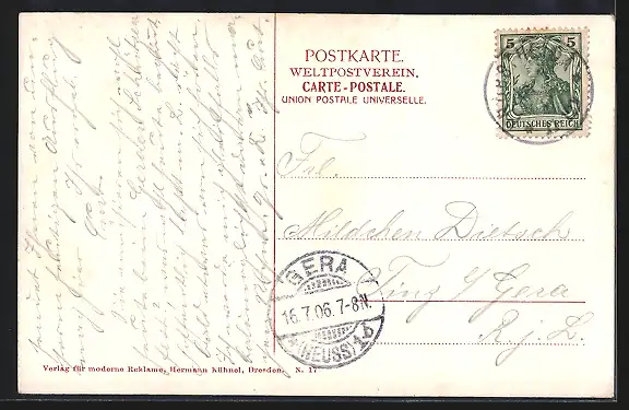 alte Ansichtskarte, gelaufen 1906, guter Zustand