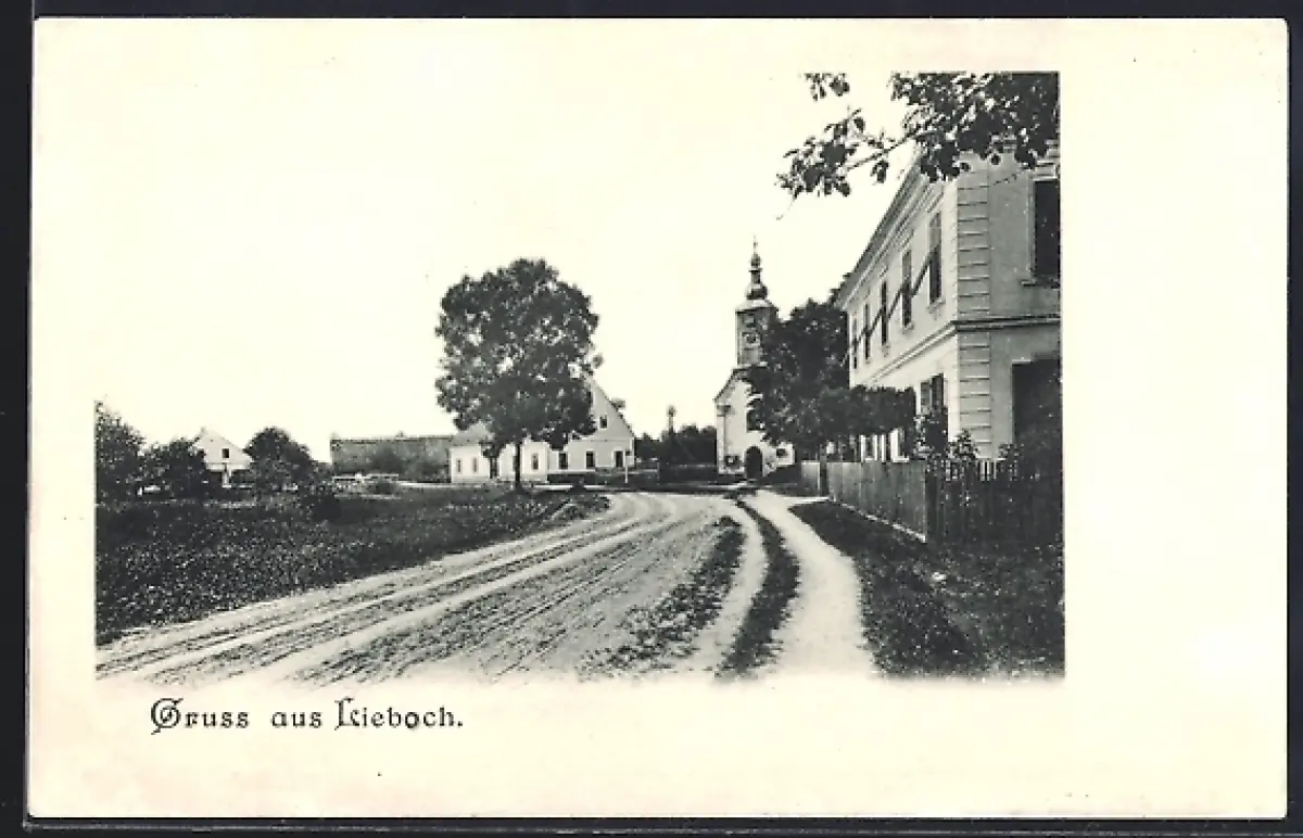 AK Lieboch, Strassenpartie mit Kirche