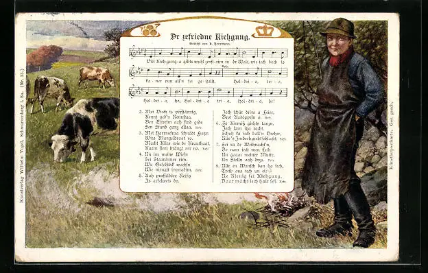 AK Lied Dr zefriedne Kiehgang, Kuhhirt mit Kühen auf der Weide