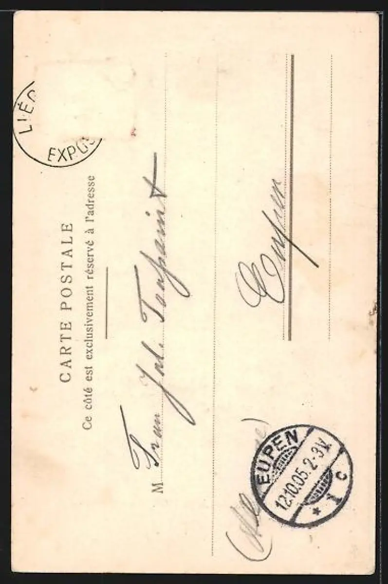 alte Ansichtskarte, gelaufen 1905, Briefmarke entfernt, rückseitig Oberflächenschaden, Eckknick links unten, guter Zustand