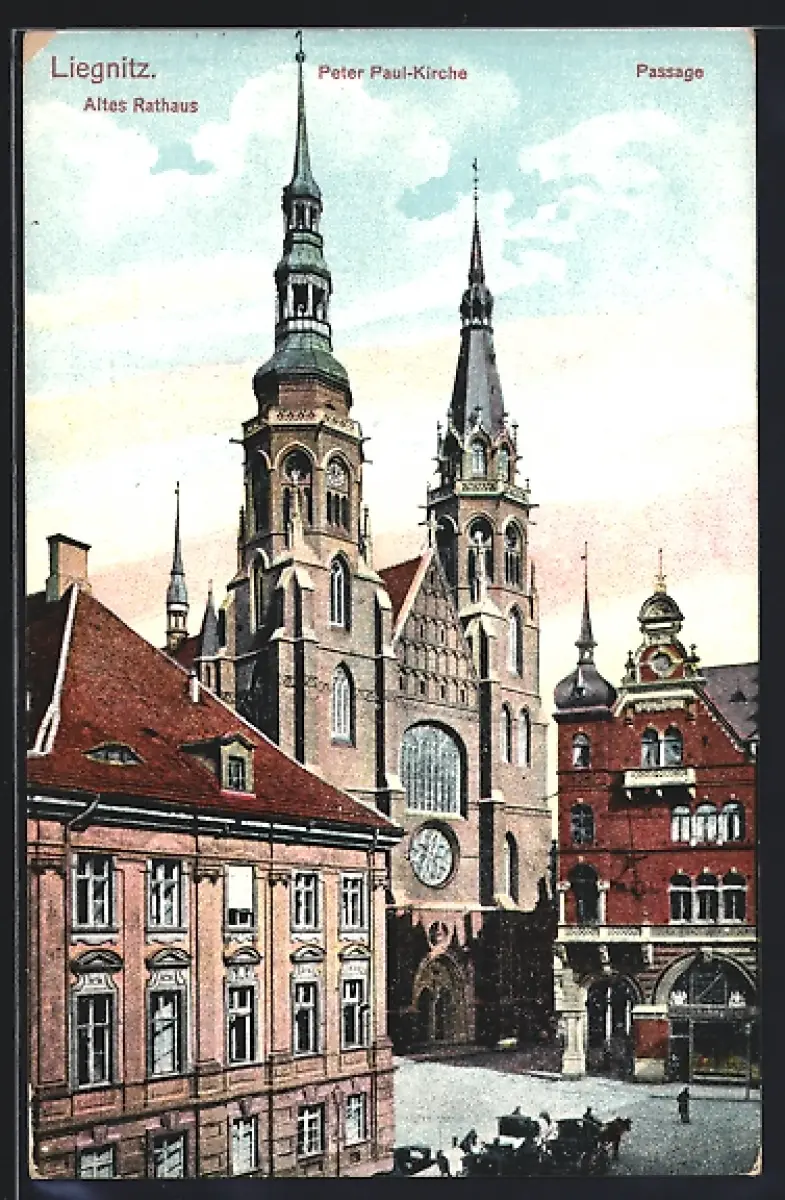 AK Liegnitz, Altes Rathaus, Peter Paul-Kirche und Passage