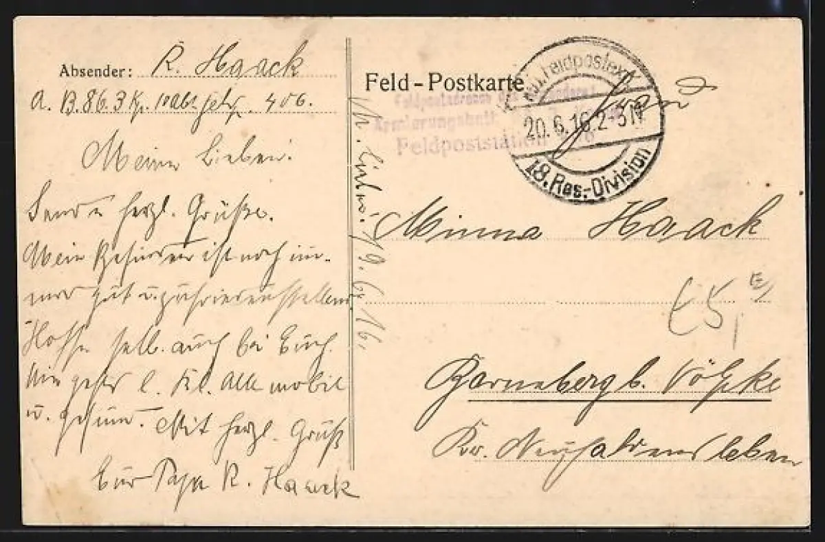 alte Ansichtskarte, gelaufen 1916, Eckknick unten rechts, guter Zustand