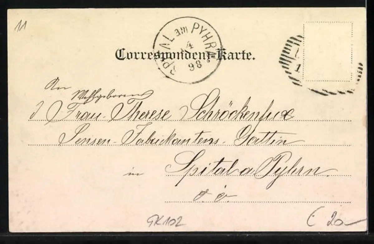 alte Ansichtskarte, gelaufen 1898, Briefmarke entfernt, guter Zustand